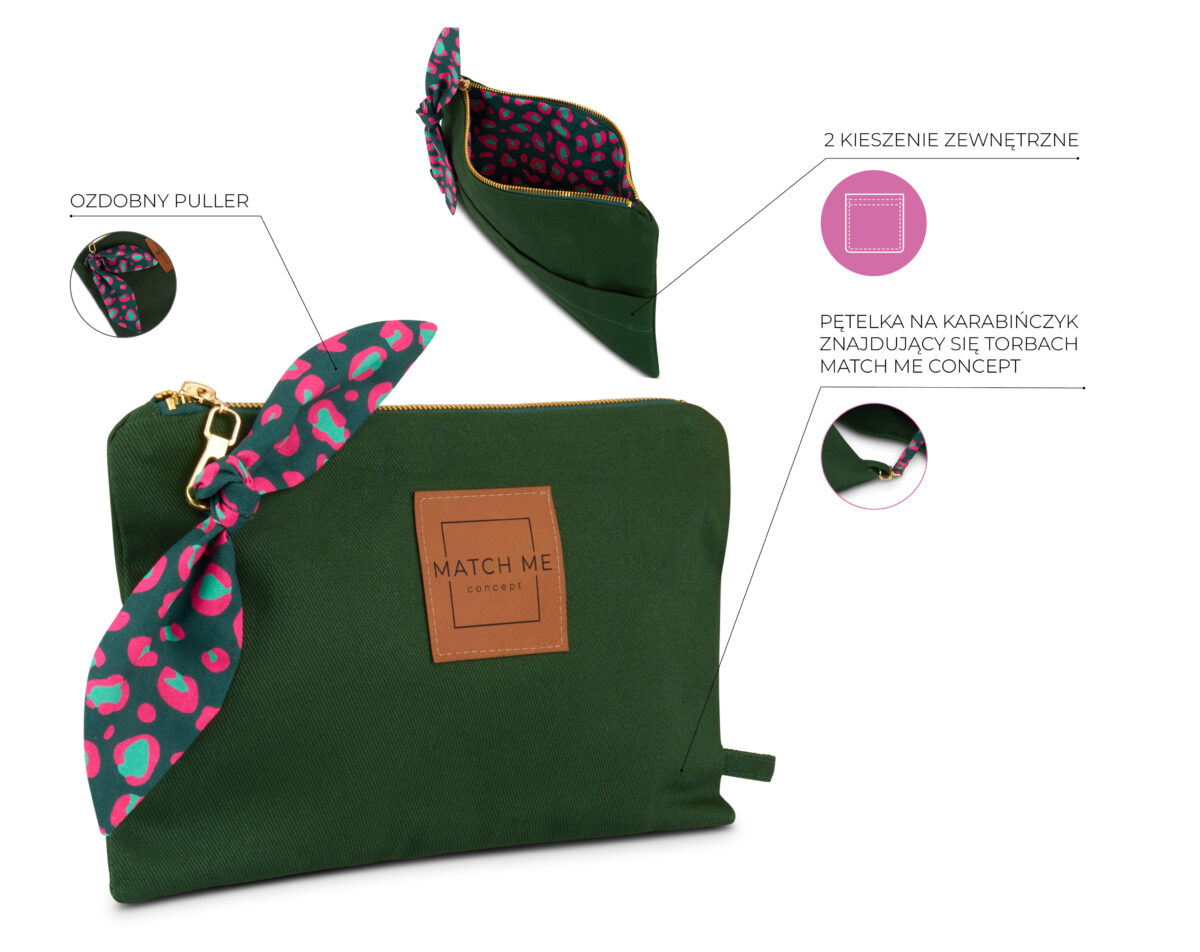 Kosmetyczka Wild Green została zaprojektowana tak, aby tworzyć spójną całość z innymi produktami Match Me Concept. Dzięki temu zbudujesz własny, funkcjonalny zestaw, który będzie nie tylko praktyczny, ale też estetycznie dopracowany. Co więcej, minimalistyczny i nowoczesny design kosmetyczki pasuje do różnych stylizacji i sytuacji. Zabierz ją na trening, weekendowy wyjazd lub po prostu wrzuć do torebki – wszystko, czego potrzebujesz, masz zawsze pod ręką.