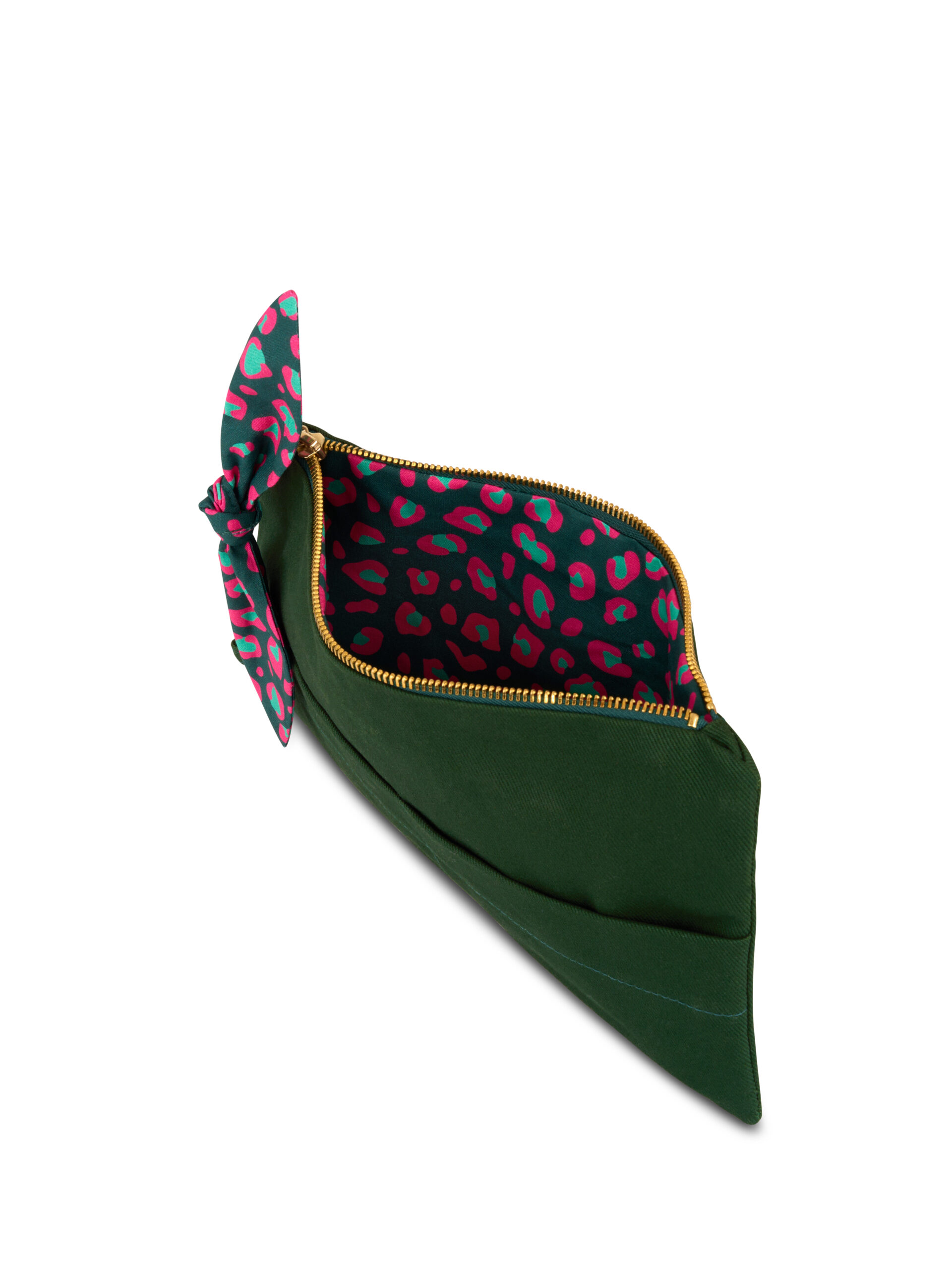 - Podszewka i puller: KRETON 121 g/m2 (skład: 100% bawełna) - kolor: butelkowa zieleń z nadrukowanym wzorem różowo-zielonych cętek.